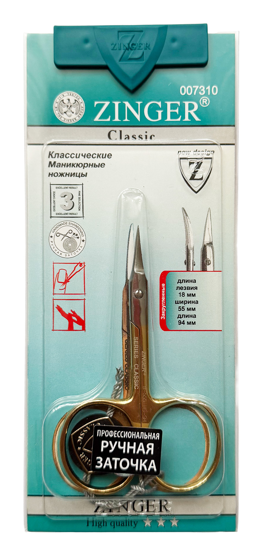 Маникюрные ножницы для кутикулы мужские с широкими кольцами, ручной заточки Zinger B-555 HG SH, золотистыеНожницы маникюрные для кутикулы, изогнутые. Изготовлены из высококачественной нержавеющей гипоаллергенной стали. Широкие кольца обеспечивают удобство использования мужчинами. Ручная заточки лезвий обеспечивает качественный рез.Производитель: Zinger 790,00 ₽ Количество: В корзину Пользовательский список пожеланий OKДобавить в список пожеланийСравнитьСообщить другуХорошо спрофилированный изгиб лезвия с легкостью справится с твердой ногтевой пластиной, придавая желательную форму. При использовании не требуют сильного нажатия. Отличие мужских маникюрных ножниц — в увеличенных отверстиях для пальцев, что делает их в использовании еще более удобными и комфортными.Ключевые преимущества:Ручная заточка: Каждое лезвие вручную затачивается мастером, что позволяет добиться режущей кромки идеальной геометрии и остроты. Такой рез — чистый, быстрый и контролируемый — недостижим при стандартной заводской заточке.Идеальная геометрия: Специально изогнутые лезвия повторяют контур ногтя, обеспечивая ювелирную точность при работе с кутикулой и твердой ногтевой пластиной. Вы легко придадите ногтям любую желаемую форму.Комфорт для мужских рук: Широкие удобные кольца сконструированы с учетом анатомических особенностей. Инструмент уверенно лежит в руке, не соскальзывает и не требует чрезмерных усилий при использовании.Премиальные материалы: Инструмент изготовлен из высококачественной нержавеющей гипоаллергенной стали, которая прошла специальную обработку для долговечности режущей кромки.Характеристики:Общая длина ножниц: 90 ммМатериал: Нержавеющая гипоаллергенная стальУникальная особенность: Ручная заточка лезвийДополнительно: Изогнутые лезвия, анатомические широкие кольцаХарактеристикиИмя атрибутаЗначение атрибутаПроизводствоРоссияИнструмент для маникюра и макияжаНазначениедля маникюра и педикюра, для кутикулыОсобенностиручная заточкаДлина инструмента94 ммШирина инструмента55 ммДлина лезвия18 ммФорма лезвийизогнутая