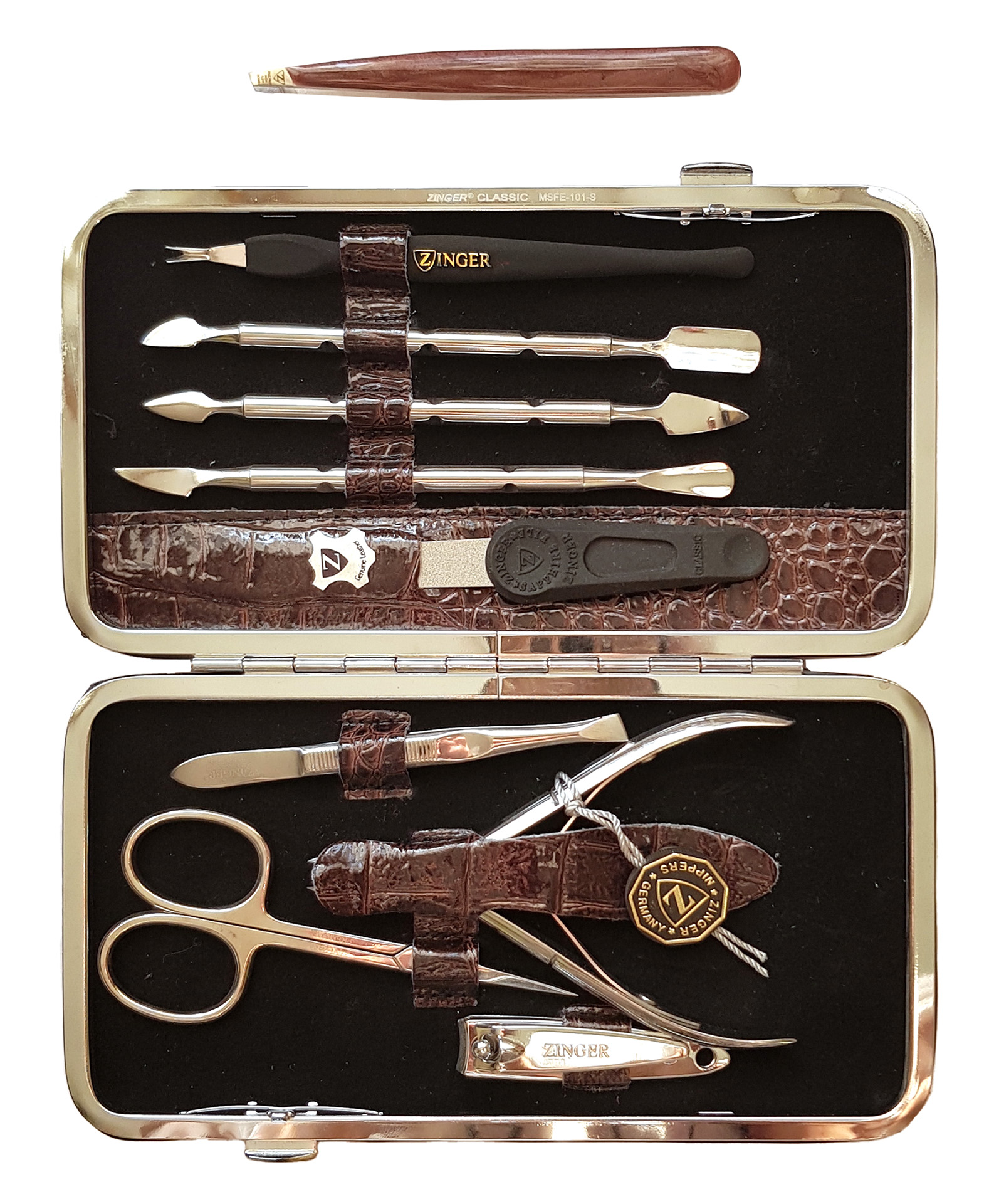 Маникюрный набор Premium-качества Zinger MSFC-101-3 S, 9 предметов + пинцетМаникюрный набор c инструментами Premium-качества ZINGER MSFС-101-3 S. Футляр изготовлен из натуральной кожи. Внутренняя отделка футляра - мягкий велюр, имитация замши. Подарочная коробка с логотипом, внутри отделана бархатной бумагой. В набор входят 9 предметов: кусачки для кутикулы, ножницы для кутикулы, пинцет скошенный, книпсер, пилка алмазная, 3 металлических пушера, триммер. Отдельно - подарок - пинцет в контейнере.Производитель: Zinger Цвет * Недоступно Недоступно Недоступно Недоступно Недоступно Недоступно Недоступно Недоступно Недоступно 5 280,00 ₽ Количество: В корзину Пользовательский список пожеланий OKДобавить в список пожеланийСравнитьСообщить другуИнструменты изготовлены из высококачественной стали марки AISI 420 (40Х13). Технология закалки позволяет сочетать необходимую упругость и высокую твёрдость металла. Вся серия заточена вручную, по стандартам мастеров маникюра: с дополнительной обработкой лезвий и полировкой кончиков. Инструменты произведены в Италии.Набор подходит как для домашнего, так и для профессионального использованияЦвет напыления-серебристый.ХарактеристикиИмя атрибутаЗначение атрибутаКоличество в упаковке9 + 1 шт.ПроизводствоРоссия
